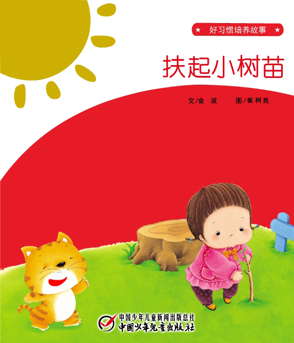 一颗小树苗被风吹倒了,小猫喵喵叫:乐乐来帮忙。乐乐扶起小树苗,培土又浇水。呀!小树苗又长出新叶子了!多棒呀!